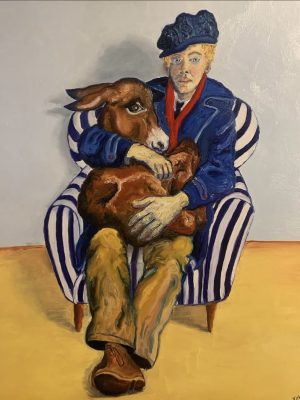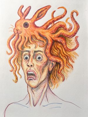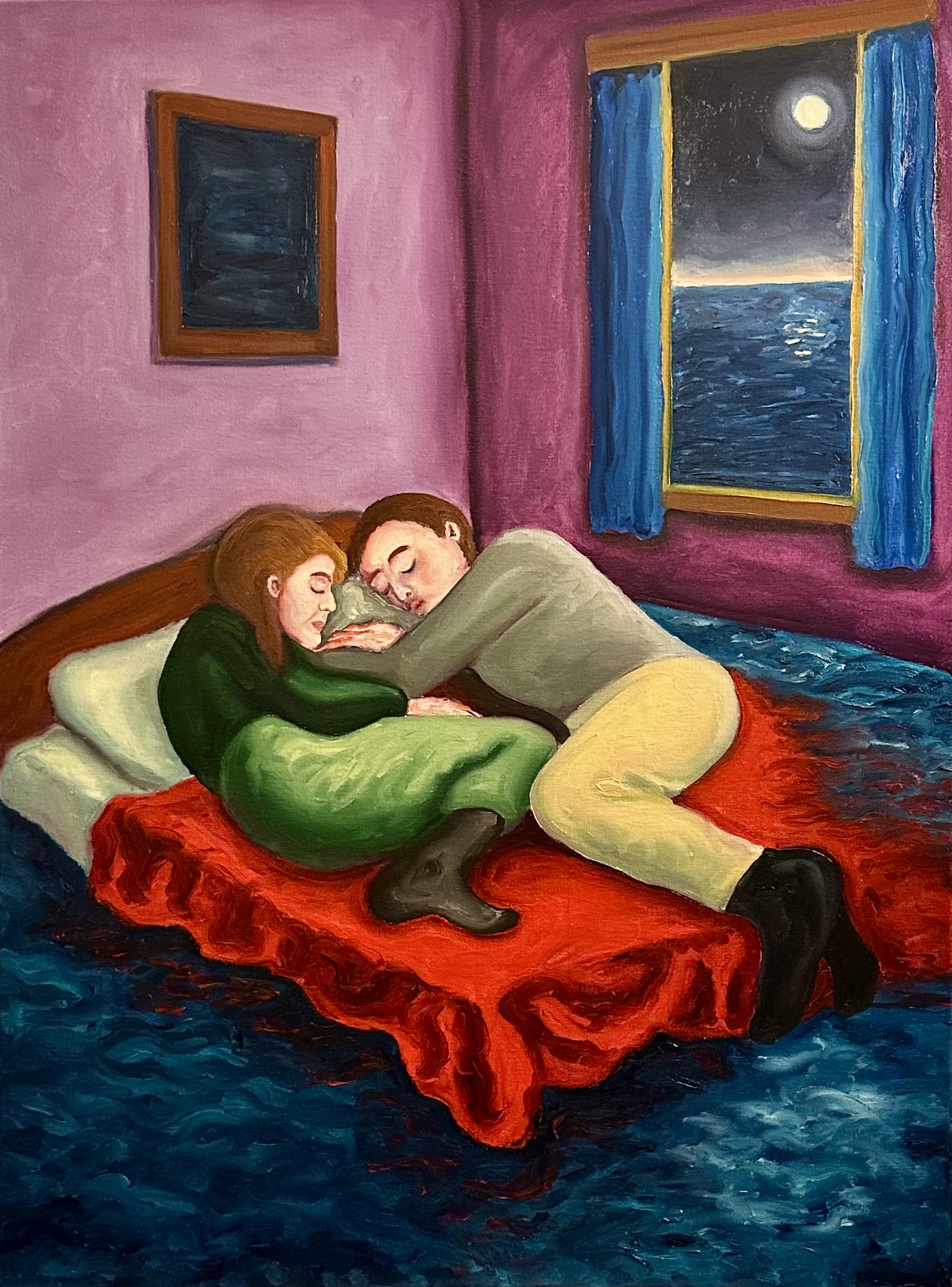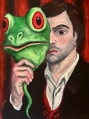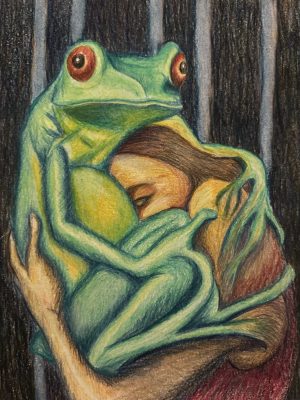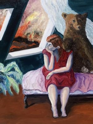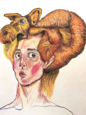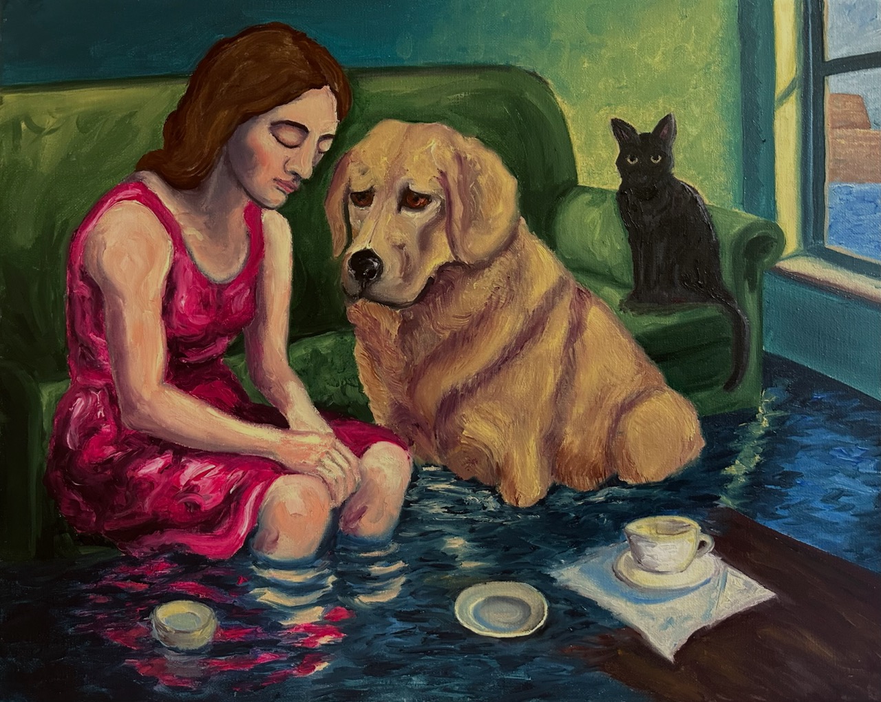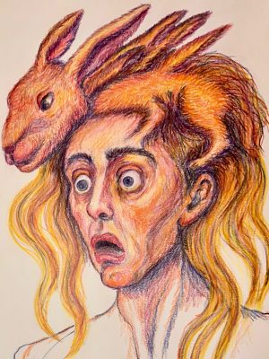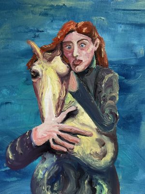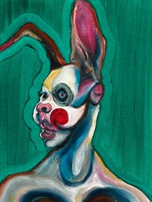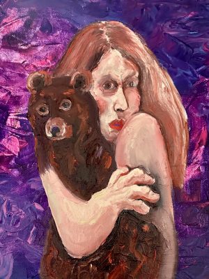 Ma peinture, expressive et colorée, puise dans la psychologie un regard sensible sur l’humain, ses métamorphoses et ses vulnérabilités. Elle explore la fusion entre l’humain et l’animal, la submersion et l’urgence climatique. Ces thématiques prennent forme à travers des figures en métamorphose, souvent féminines, saisies dans des états de tension, de fragilité ou d’hybridation.