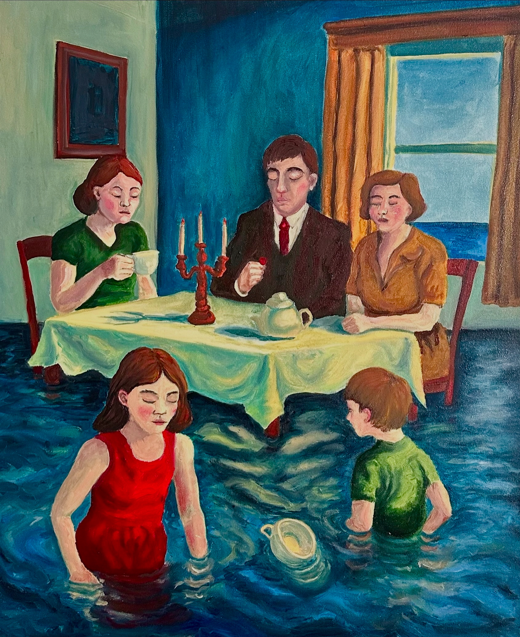 L’exposition invite à une double lecture : celle d’une peinture incarnée, où la matière et les couleurs traduisent des états d’âme, et celle d’un récit collectif où l’urgence climatique s’infiltre dans le quotidien le plus intime.